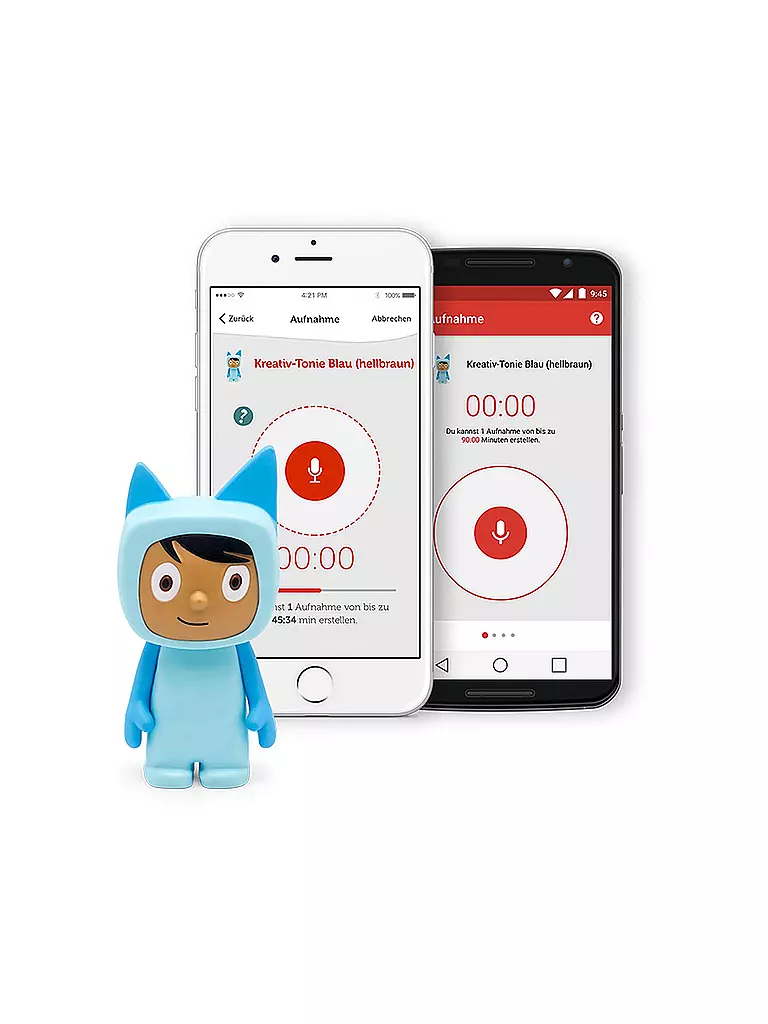 Mit der dazugehörigen, kostenlosen Smartphone-App können eigene Sprachaufnahmen aufgezeichnet und dem Kreativ-Tonie zugewiesen werden.