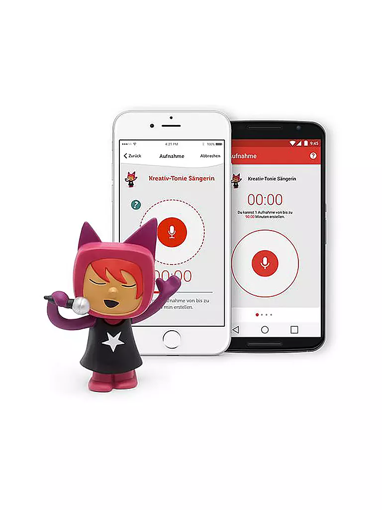 Mit der dazugehörigen, kostenlosen Smartphone-App können eigene Sprachaufnahmen aufgezeichnet und dem Kreativ-Tonie zugewiesen werden.