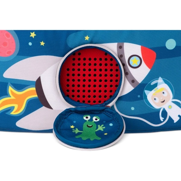 | Feature | Verstecktes Detail auf der Innenseite der Lautsprecherklappe, Toniebox Öffnung/Lautsprecherklappe, Trennstege (wegklappbar, Klett), Aufhängung (Haken), Platz für Toniebox, Ladestation, Kopfhörer… | ||