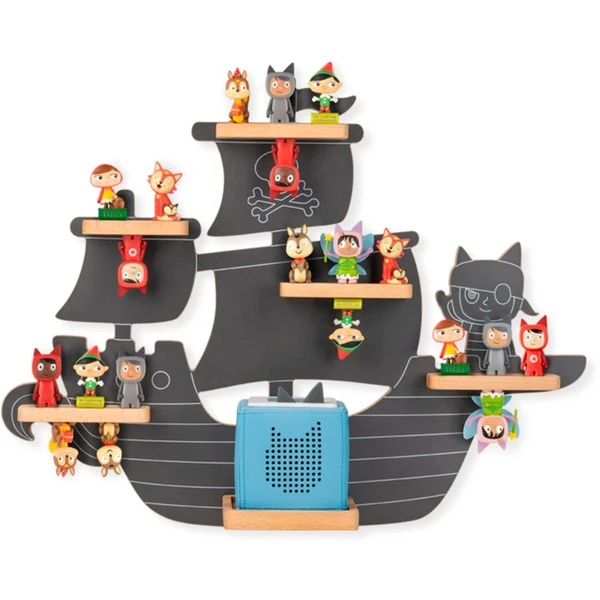 Das Tonie Regal „Auf den sieben Weltmeeren“ in der Farbe Sturmgrau ist die perfekte Bühne für die Tonie-Sammlung. Dabei ist es viel mehr als ein dekoratives Wandregal: Es ist eine moderne Bibliothek, die entworfen wurde, um die Lieblings-Tonies, die Toniebox und ihre Ladestation unterzubringen. Auf dem sturmgrauen Schiff schippert die Crew durch ruhige Gewässer, bevor sie in neue Abenteuer aufbricht. Süße Motive aus der Tonie-Welt machen den bezaubernden Blickfang zum einzigartigen Hingucker in jedem Kinderzimmer. Bis zu 35 Tonies stehen oder hängen sicher auf den magnetischen Holzflächen. Die Toniebox hat ihren eigenen Platz mit Öffnung und Vertiefung für ihre Ladestation. Das Regal lässt sich schnell und einfach an der Wand montieren, die passenden Schrauben und Dübel sind dabei.Art.-Nr.: 1918274